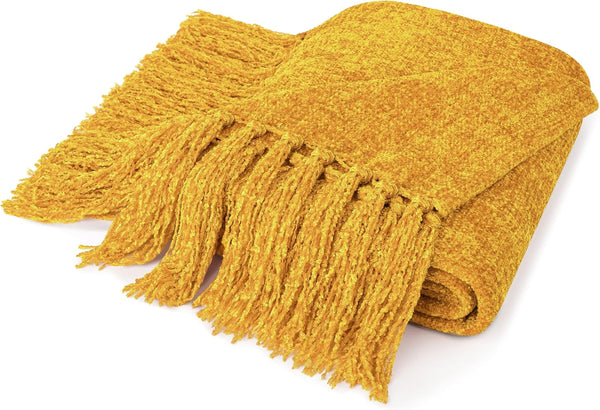 Our Cozy Gold Knit Blanket adds warmth and elegance to any space. Its soft, velvety texture wraps you in comfort, transforming your couch or bed into a haven of relaxation and style.